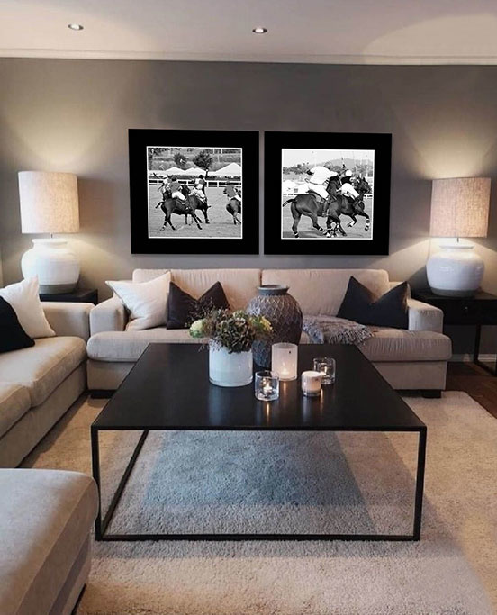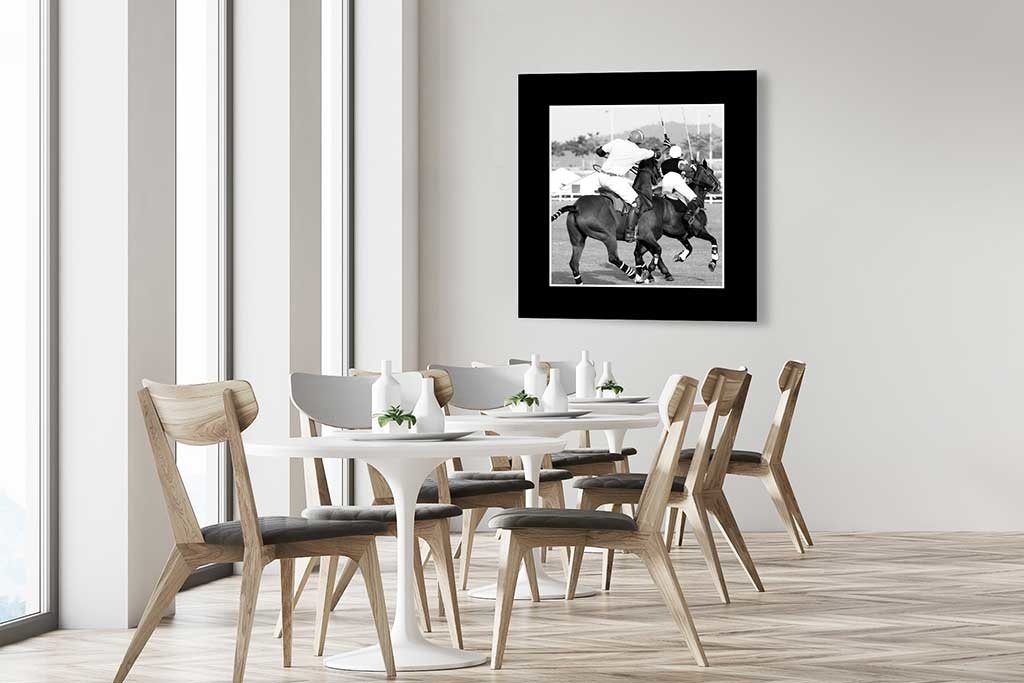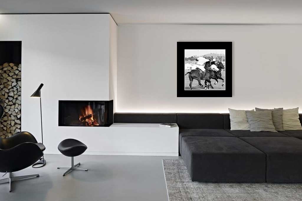 Schöne Dibond Ausgabe eines Polo-Bildes mit schwarzem Rahmen.