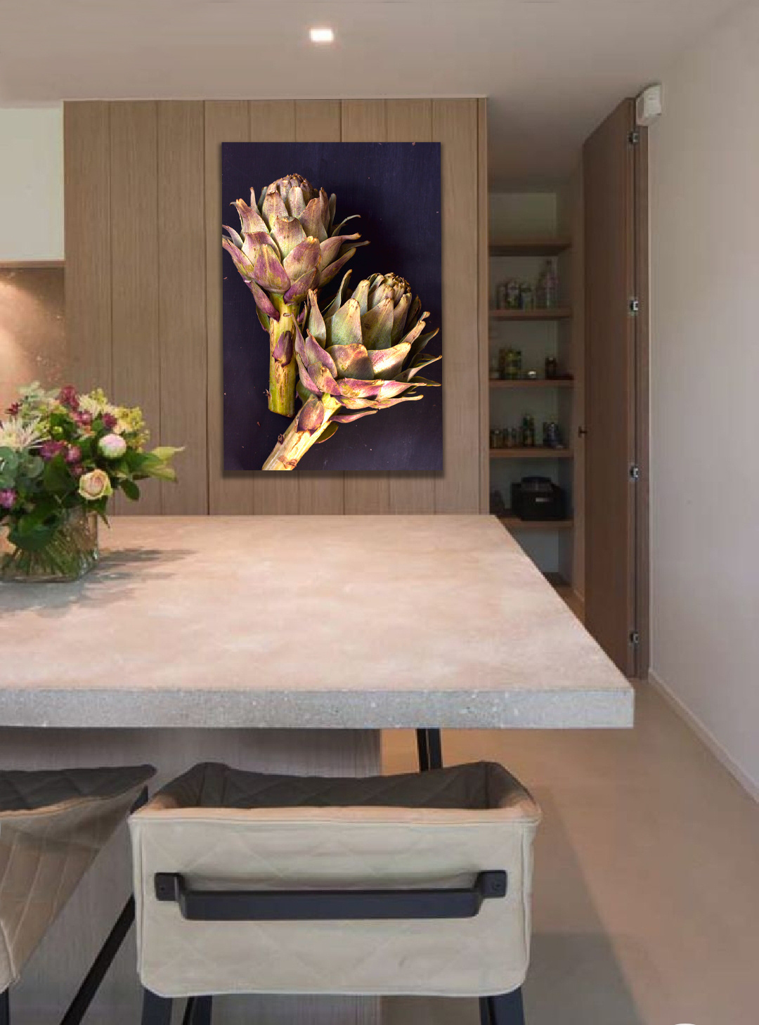 Eine stilvolle Fotokunst, die durch das schöne Spiel von Farben und Linien im positiven Sinne auffällt. Der Lichteinfall zeigt die Schönheit dieser Pflanzenart in besonderer Weise. 'Pure Artichokes' zeigt die Kraft der Natur und verdient einen prominenten Platz im Haus, wie in der Küche. Hängen Sie es an eine helle Wand und machen Sie dieses Kunstwerk zu einem echten Blickfang oder entscheiden Sie sich für eine dunkle Wand, so dass das Kunstwerk nahtlos in die Farbe der Wand übergeht.