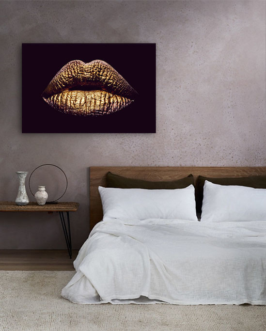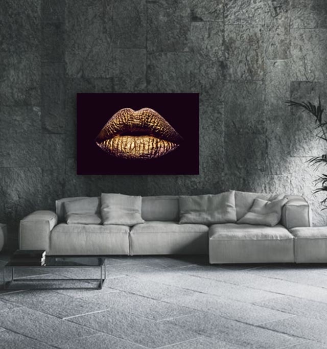 Wir haben goldene Lippen, dies ist die Variante lila Lippen, anders in der Farbe, die dunkel lila warmen Hintergrund macht auch diese Kunst etwas Besonderes.