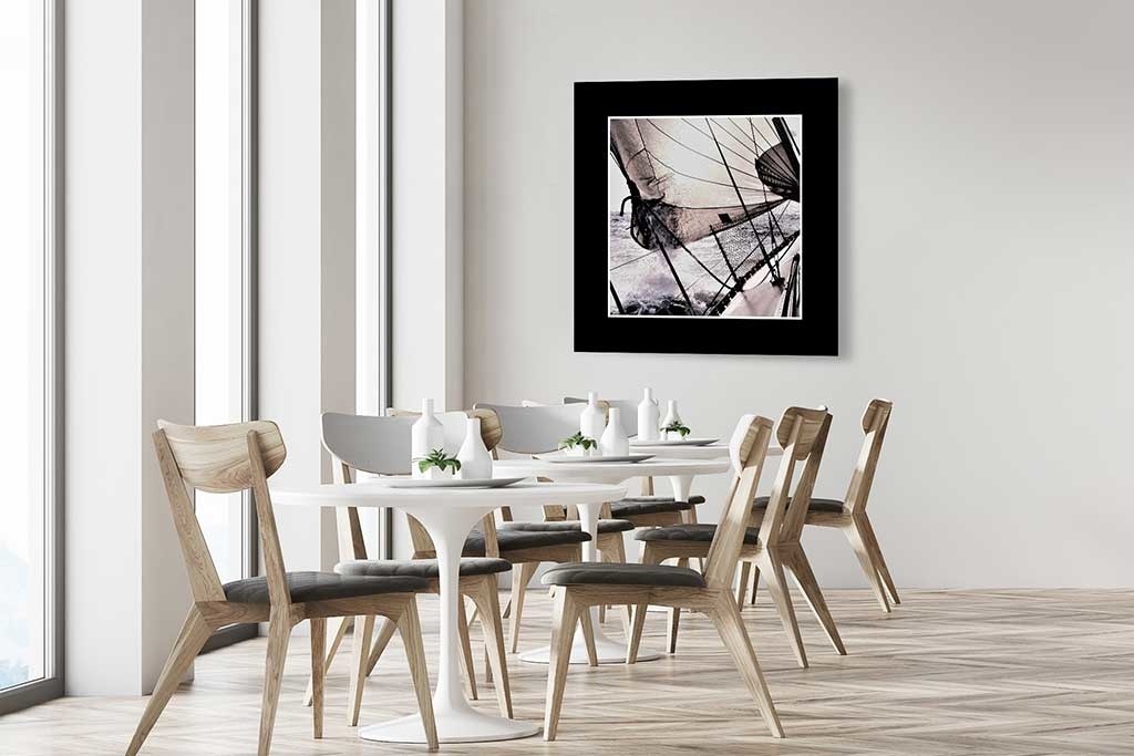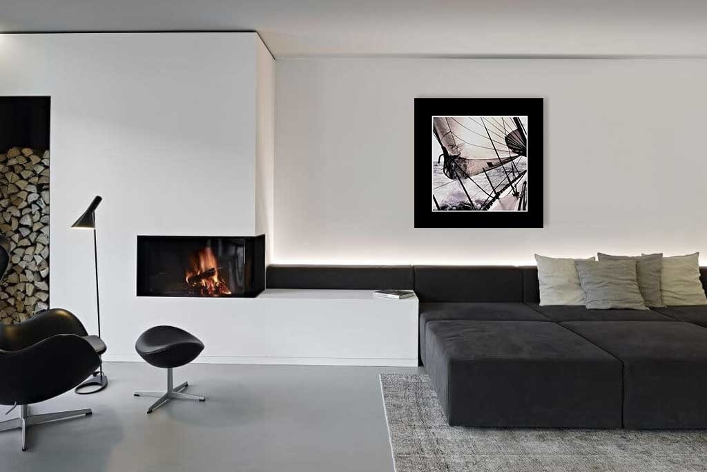 Schönes Bild mit schwarzem Rumpf eines Segelbootes, sehr schön zu kombinieren mit anderen Bildern aus unserer Sammlung. Sehr schön auf Dibond.