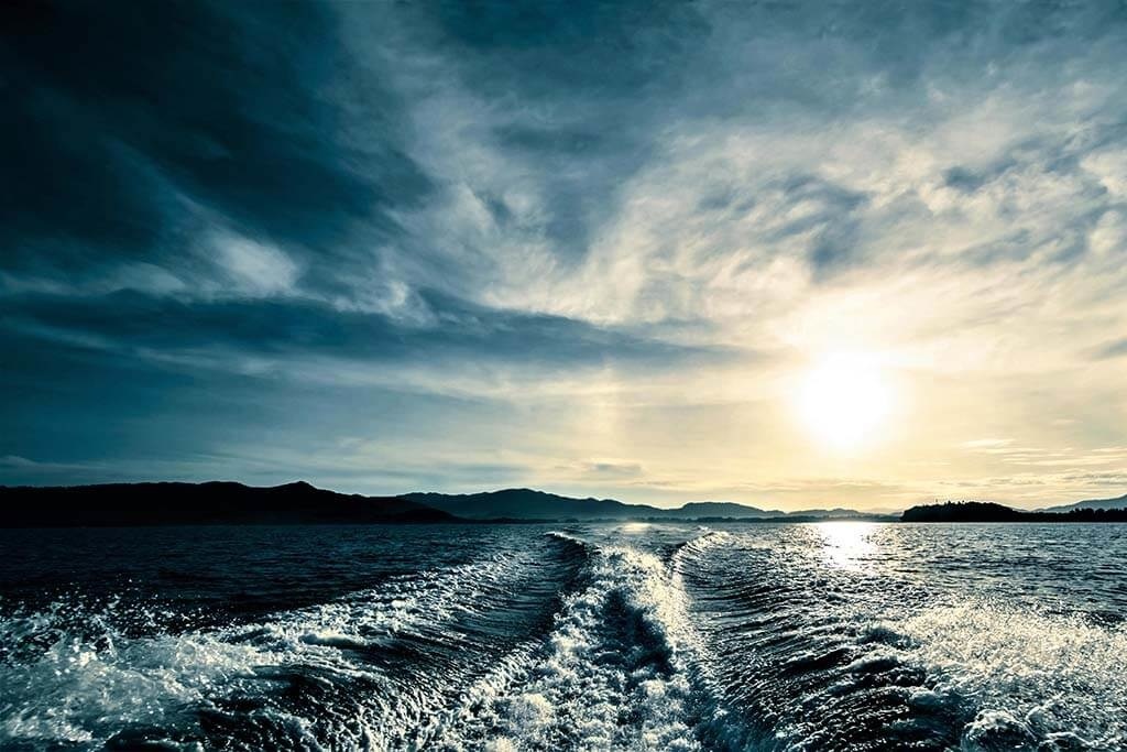 Beim Betrachten dieses Bildes fühlt man sich wie auf dem Meer. Die Sonne geht gerade auf und verleiht sowohl dem Meer als auch dem Himmel eine schöne weiche Farbe. Ein Bild zum Wegträumen, als säßen Sie hinten auf dem Boot mitten auf dem Meer. Hängen Sie es zum Beispiel über das Bett im Schlafzimmer.