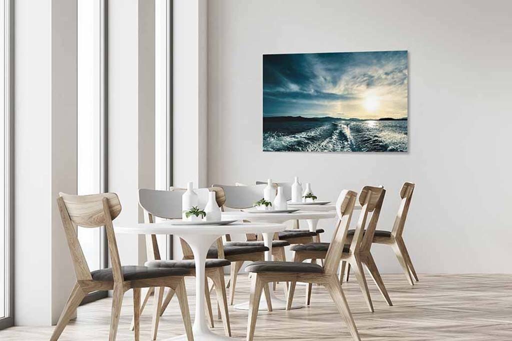Da das ausgewählte Bild direkt auf Plexiglas gedruckt wird und bei größeren Abmessungen eine Dicke von 3 mm bis 5 mm aufweist, erhält das Bildmaterial noch mehr Tiefe. Sie haben das Gefühl, sozusagen in das Foto eintreten zu können. Dies ist hauptsächlich auf die Tatsache zurückzuführen, dass Plexiglas mehr Licht durchlässt als normales Glas. Die Farben wirken schärfer, fast brillant und es gibt einen optimalen Tiefeneffekt und damit Kontrast. Fotokunst, bei der die leuchtenden Farben mit einer langen Lebensdauer und einem luxuriösen Aussehen spritzen.