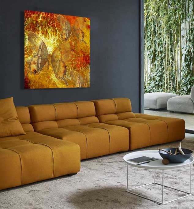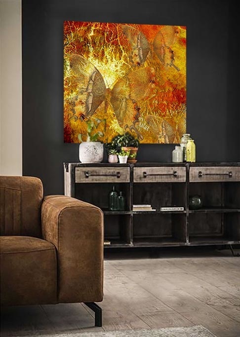 Eingeflochten in diese schöne Kunst sehen Sie Schmetterlinge, die das Bild der Kunst subtil bestimmen. ein schöner Blickfang in jedem Interieur. Erhältlich in limitierter Auflage bei Xiart. Hervorragend zu kombinieren mit anderen Kunstwerken aus unserer Spezialsammlung.