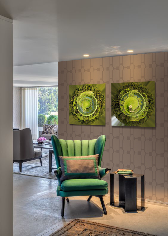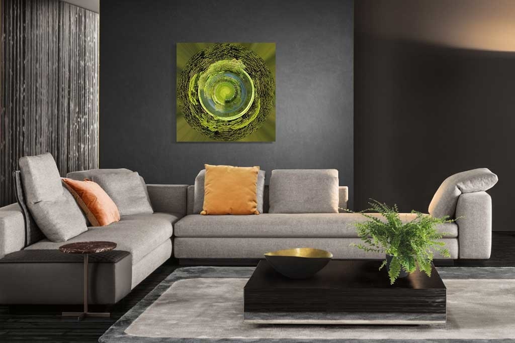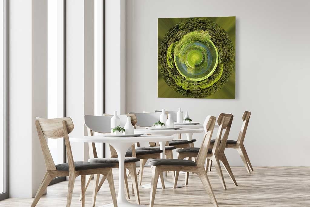 Abstrakte Kunst, schöne quadratische Bild eines Planeten mit schönen Schattierungen der Natur, sehr schön mit ähnlichen Bild zu kombinieren, indem 2 nebeneinander hängen.