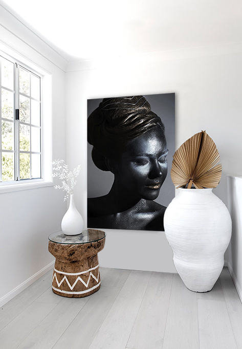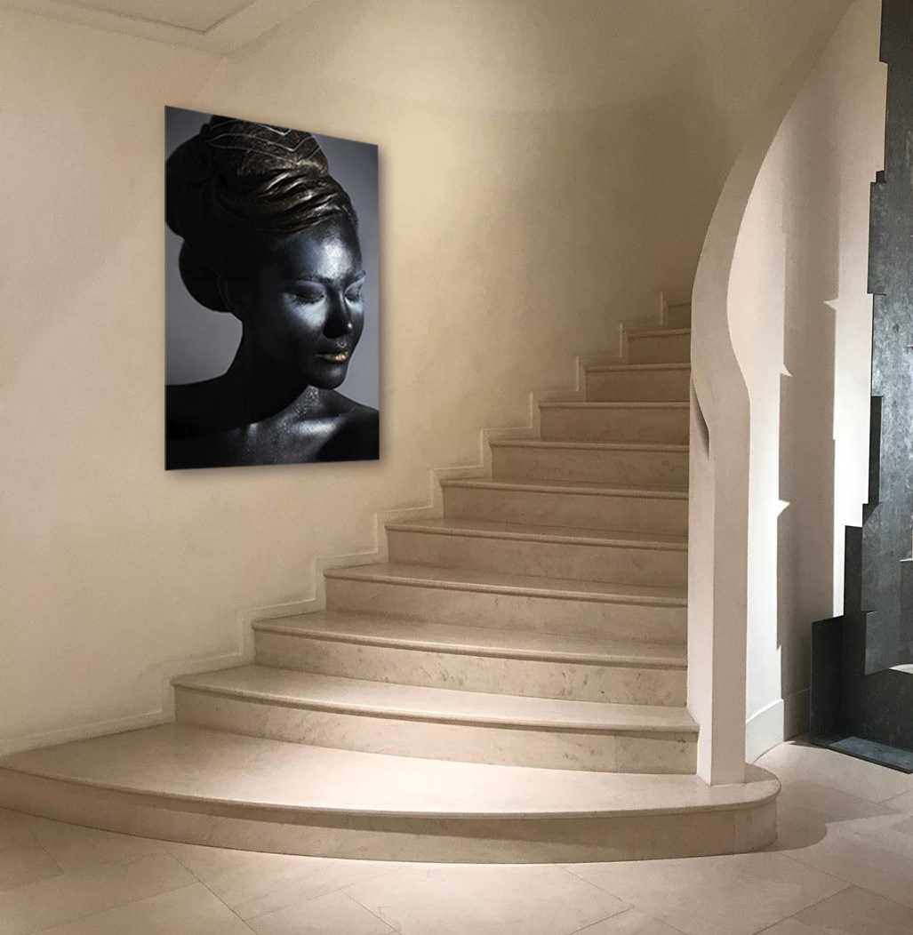 Die Fototafel hat rundum ein luxuriöses Aluminiumprofil auf der Rückseite und kann mit einem Schraubendaumen (Haken) an die Wand gehängt werden. Das hintere Profil sorgt für Stabilität und verhindert ein Verziehen der Verkleidung. Da das Profil 2 Zentimeter dick ist, wird ein schwebender Effekt Ihres Kunstwerks an der Wand erzeugt.