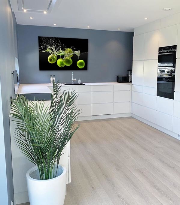Da das ausgewählte Bild direkt auf Plexiglas gedruckt wird und bei größeren Abmessungen eine Dicke von 3 mm bis 5 mm aufweist, erhält das Bildmaterial noch mehr Tiefe. Sie haben das Gefühl, sozusagen in das Foto eintreten zu können. Dies ist hauptsächlich auf die Tatsache zurückzuführen, dass Plexiglas mehr Licht durchlässt als normales Glas. Die Farben wirken schärfer, fast brillant und es gibt einen optimalen Tiefeneffekt und damit Kontrast. Fotokunst, bei der die leuchtenden Farben mit einer langen Lebensdauer und einem luxuriösen Aussehen spritzen.