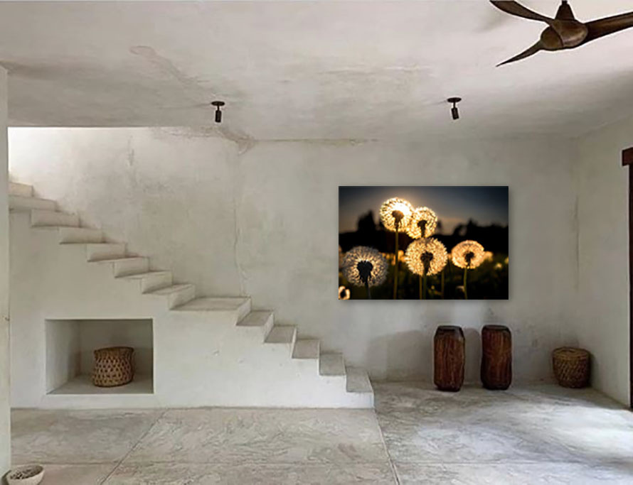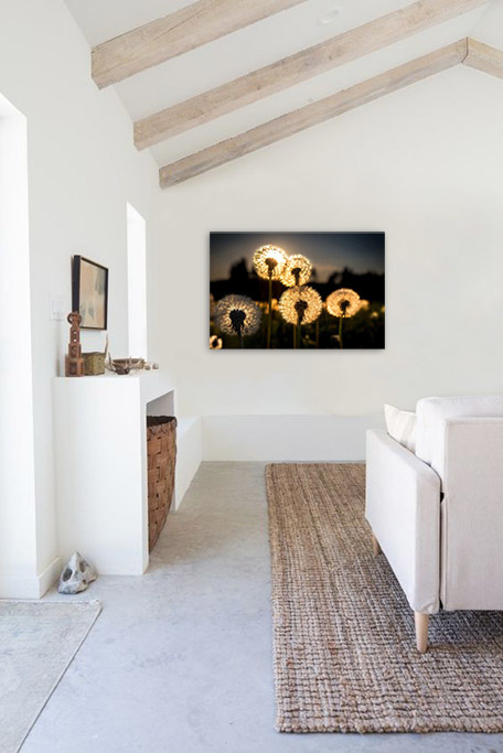 Da das ausgewählte Bild direkt auf Plexiglas gedruckt wird und bei größeren Abmessungen eine Dicke von 3 mm bis 5 mm aufweist, erhält das Bildmaterial noch mehr Tiefe. Sie haben das Gefühl, sozusagen in das Foto eintreten zu können. Dies ist hauptsächlich auf die Tatsache zurückzuführen, dass Plexiglas mehr Licht durchlässt als normales Glas. Die Farben wirken schärfer, fast brillant und es gibt einen optimalen Tiefeneffekt und damit Kontrast. Fotokunst, bei der die leuchtenden Farben mit einer langen Lebensdauer und einem luxuriösen Aussehen spritzen.