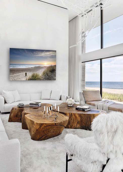 Da das ausgewählte Bild direkt auf Plexiglas gedruckt wird und bei größeren Abmessungen eine Dicke von 3 mm bis 5 mm aufweist, erhält das Bildmaterial noch mehr Tiefe. Sie haben das Gefühl, sozusagen in das Foto eintreten zu können. Dies ist hauptsächlich auf die Tatsache zurückzuführen, dass Plexiglas mehr Licht durchlässt als normales Glas. Die Farben wirken schärfer, fast brillant und es gibt einen optimalen Tiefeneffekt und damit Kontrast. Fotokunst, bei der die leuchtenden Farben mit einer langen Lebensdauer und einem luxuriösen Aussehen spritzen.