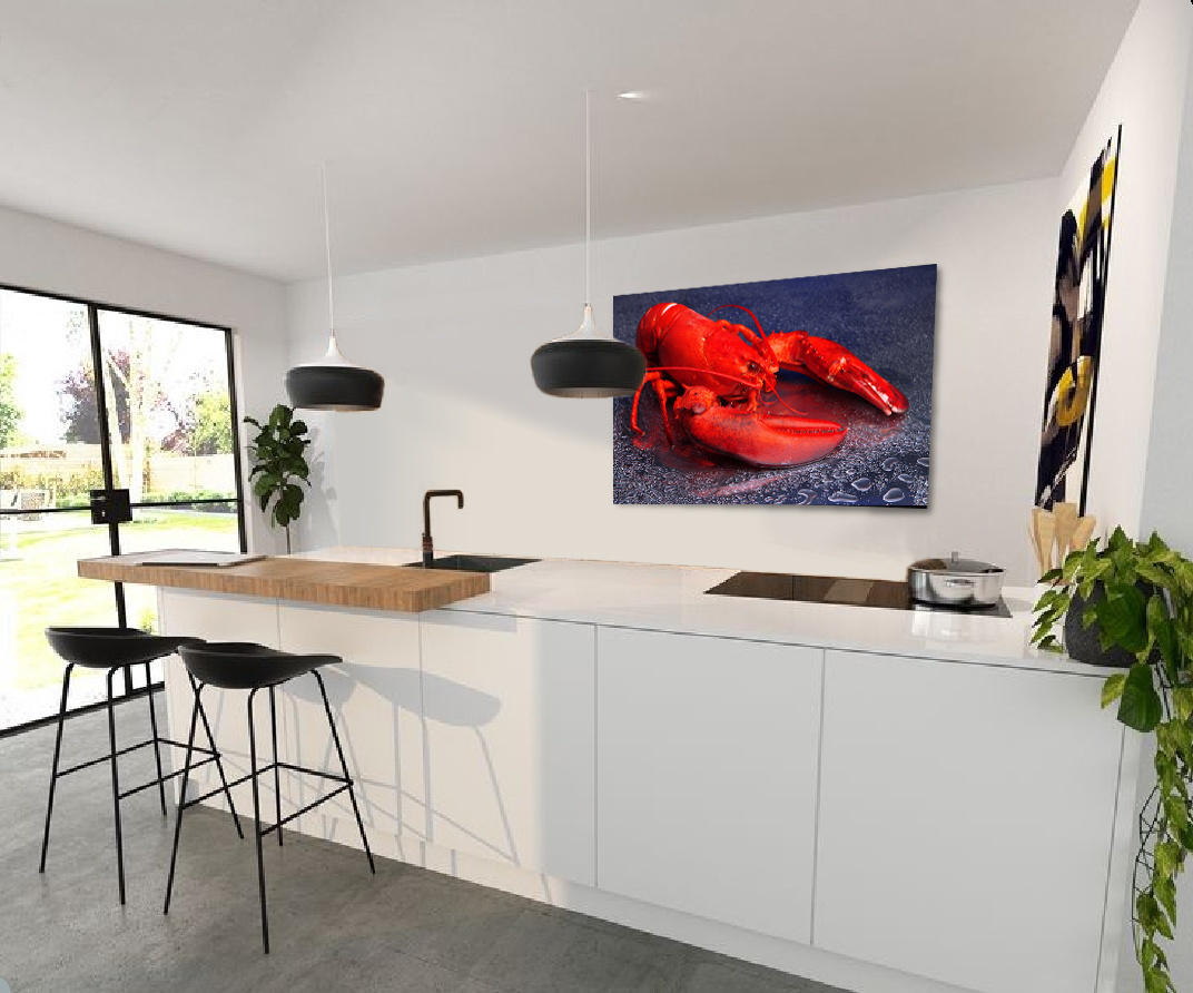 Sie suchen einen echten Star in der Küche? Dann ist unsere Fotokunst 'The Lobster' die perfekte Wahl. Diese Delikatesse verleiht Ihrer Küche eine schicke Note. Dank der leuchtend roten Farbe und der interessanten Nahaufnahme ist Ihnen ein echter Blickfang sicher, der Sie immer wieder fasziniert. Schön auf hellen und dunklen Wänden.