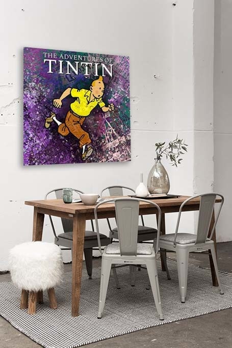 Dieses Fotokunstwerk zeigt Tintin (Tim und Struppi); eine bekannte Zeichentrickfigur, die von einem belgischen Cartoonisten und Drehbuchautor geschaffen wurde. Tintin ist ein junger Journalist, der Abenteuer in der ganzen Welt erlebt. Nicht umsonst heißt die Zeichentrickserie 'Die Abenteuer von Tim und Struppi'. Charakteristisch für diese weltberühmte Comic-Serie ist ihr humanistischer Charakter und der klare Zeichenstil. Der Designer dieses Fotokunstwerks hat verschiedene Elemente wie Zeitungsausschnitte und leuchtende Farben kombiniert, um dieses Fotokunstwerk zu einem wahren Kunstwerk zu machen. Schön zum Beispiel im Wohnzimmer oder zur Aufheiterung des Flurs. Dies ist ein Xiart Special und ist in limitierter Auflage erhältlich.