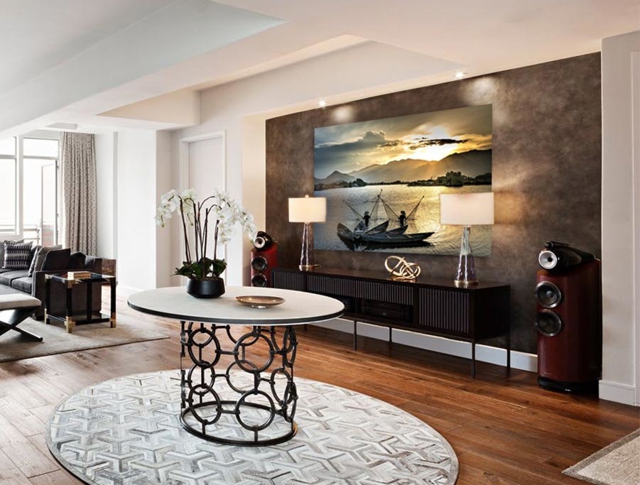 Die Fototafel hat rundum ein luxuriöses Aluminiumprofil auf der Rückseite und kann mit einem Schraubendaumen (Haken) an die Wand gehängt werden. Das hintere Profil sorgt für Stabilität und verhindert ein Verziehen der Verkleidung. Da das Profil 2 Zentimeter dick ist, wird ein schwebender Effekt Ihres Kunstwerks an der Wand erzeugt.