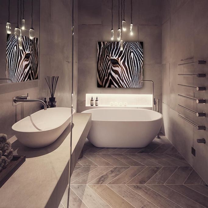 Da das ausgewählte Bild direkt auf Plexiglas gedruckt wird und bei größeren Abmessungen eine Dicke von 3 mm bis 5 mm aufweist, erhält das Bildmaterial noch mehr Tiefe. Sie haben das Gefühl, sozusagen in das Foto eintreten zu können. Dies ist hauptsächlich auf die Tatsache zurückzuführen, dass Plexiglas mehr Licht durchlässt als normales Glas. Die Farben wirken schärfer, fast brillant und es gibt einen optimalen Tiefeneffekt und damit Kontrast. Fotokunst, bei der die leuchtenden Farben mit einer langen Lebensdauer und einem luxuriösen Aussehen spritzen.