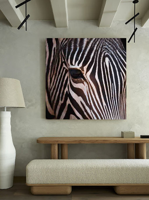 Nahaufnahme eines Zebras, moderne Schwarz-Weiß-Kunst.